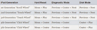 การเข้าโหมดต่างๆ ใน iPod Classic เพื่อทำ Hard Reset เวลา iPod ค้าง หรือ มีปัญหา เป็นวิธีแรกที่ควรลองทำ Diagnostic Mode คือการเข้าหน้าคล้ายๆ Bios ใน Windows ใช้ Test Hardware ต่างๆ และ Disk Mode ที่ใช้เวลา iPod ไม่สามารถ Sync กับ PC หรือ เข้าหน้าปกติไม่ได้