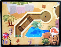 • Tommy Totem’s Tiki Putt Putt (ระดับง่าย) : ตอนเริ่มเกมจะสามารถ เล่นสนามนี้ได้สนามเดียว สนามนี้จะมีอุปสรรคน้อยค่ะ หลักๆ ก็จะมี Block ไม้ , งูที่ขยับไปมา , ระดับพื้นที่ไม่ต่างมากนัก และจุดวาร์ปจะเป็น หลุมดำ และตุ๊กตาทิกิอ้าปาก (ถ้าปิดปากวาร์ปไม่ได้นะต้องกะจังหวะ)